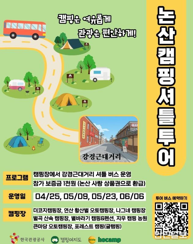 한민일보 서울포커스 유돈상 기자 | 논산시는 4월 25일부터 강경근대거리의 관광 매력을 널리 알리고 체류형 관광 활성화를 위해 ‘논산 캠핑 셔틀버스’ 프로그램을 운영한다.