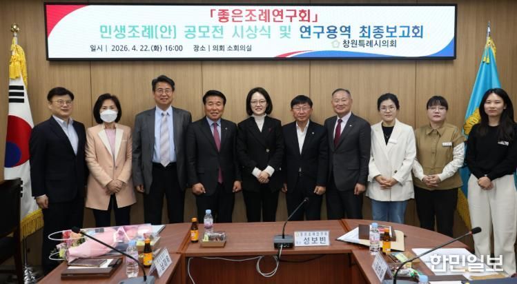 한민일보 서울포커스 김서윤 기자 | 창원특례시의회 좋은조례연구회는 22일 최종보고회를 열어 시민들의 삶의 질을 높이고자, 시민들이 직접 제안한 우수 조례안 아이디어를 공유했다.