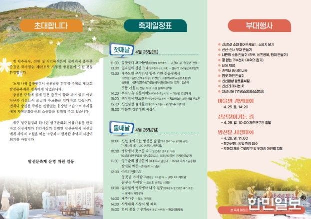 한민일보 서울포커스 김다남 기자 | 제주시는 ‘제23회 방선문 축제’가 4월 25일부터 26일까지 오라동 방선문 일대에서 개최된다고 밝혔다.