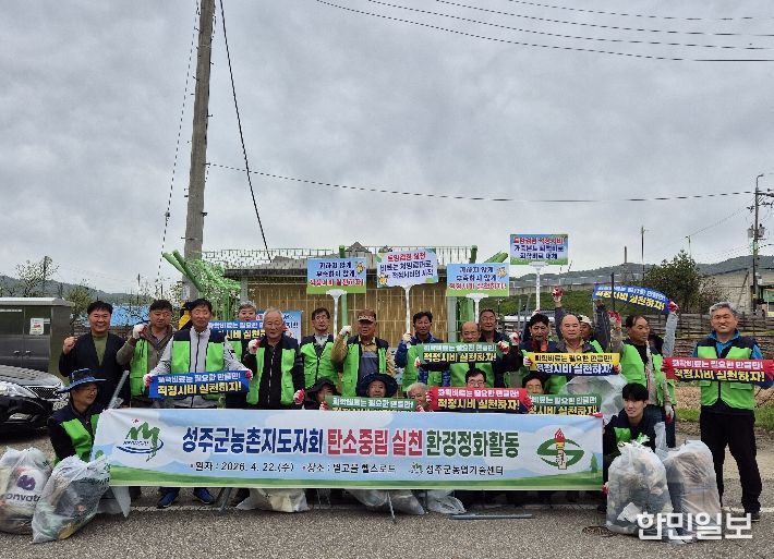 한민일보 서울포커스 진광성 기자 | 성주군은 4월 22일 성주읍 대황리 헬스로드(대흥교) 일원에서 농촌지도자 회원 20여 명이 참여한 가운데 탄소중립 실천을 위한 환경정화 활동을 실시했다고 밝혔다.