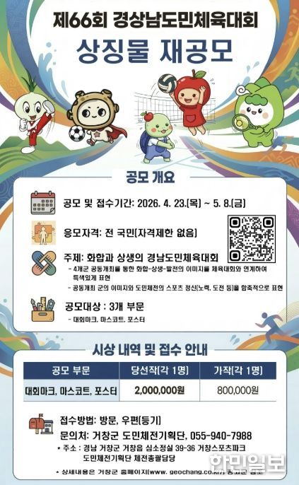 한민일보 서울포커스 김서윤 기자 | 거창·산청·함양·합천 서북부경남 4개군은 2027년에 개최되는 ‘제66회 경상남도민체육대회’의 상징성과 완성도를 높이기 위해 상징물 재공모를 진행한다.
