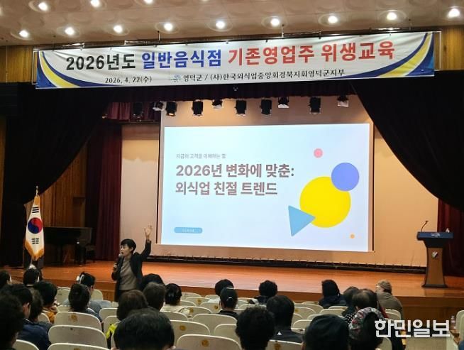 한민일보 서울포커스 임경복 기자 | 영덕군은 관내 외식 산업 영업자들의 위생 관리 역량을 높이고 고품격 외식 환경을 조성하기 위해 22일 영덕군민회관에서 일반음식점 기존영업자 300여 명을 대상으로 ‘2026년 일반음식점 위생교육’을 시행했다.