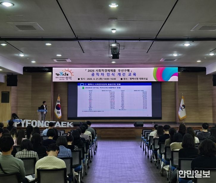 한민일보 서울포커스 황준형 기자 | 평택시는 지난 21일 평택시청 대회의실에서 평택시 및 산하 공공기관 구매담당자 100여 명을 대상으로 사회적경제기업 제품 우선구매 활성화를 위한 공공구매 담당자 인식개선 교육을 진행했다.