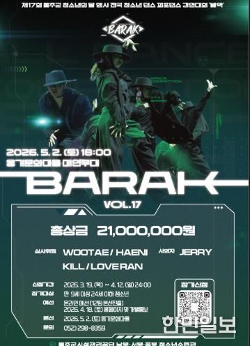 한편, 제17회 울주군 청소년의 달 행사 ‘발악(BARAK)’은 누구나 무료로 관람할 수 있으며, 옹기축제를 찾은 시민과 관광객들에게 활기찬 에너지를 전달할 예정이다.