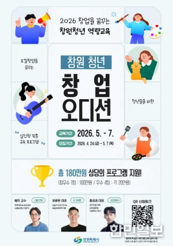 정성림 창원시 청년정책담당관은 “이번 청년 창업 오디션은 단순한 이론 교육을 넘어 현업 전문가들의 밀착 멘토링과 실질적인 사업화 지원을 받을 수 있는 좋은 기회”라며, “창원의 미래를 이끌어갈 참신한 아이디어를 가진 청년들의 많은 관심과 참가를 바란다”고 말했다.