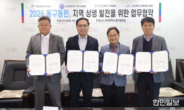 한민일보 서울포커스 임경복 기자 | 대전 동구는 23일 구청장 접견실에서 우송대학교‧동구 체육회와 ‘동구동런(Run)’ 운영 활성화를 위한 업무협약을 체결했다고 밝혔다.