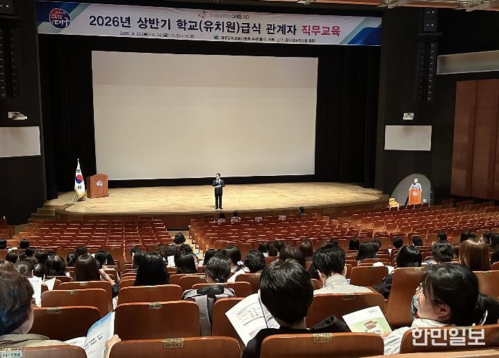 한민일보 서울포커스 임경복 기자 | 대구달성교육지원청은 4월 23일부터 24일까지 이틀간 대구학생문화센터 대공연장에서 대구지역 전체 영양(교)사·조리사·학교급식소위원(학부모) 등 1,902명을 대상으로 ‘학교급식 관계자 직무연수’를 개최한다.