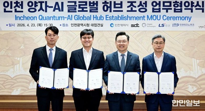 한민일보 서울포커스 유창렬 기자 | 인천광역시는 ㈜에스디티(이하 ‘SDT’), 미국 Anyon Computing(이하 ‘Anyon’), LS증권, 인천테크노파크와 함께 ‘양자-AI 글로벌 허브 조성’을 위한 업무협약(MOU)을 체결했다고 밝혔다.