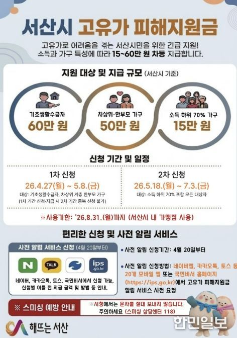 한민일보 서울포커스 임경복 기자 | 충남 서산시가 고유가 피해 지원금의 신속한 지급을 위해 230여억 원을 성립 전 예산으로 편성했다고 밝혔다.