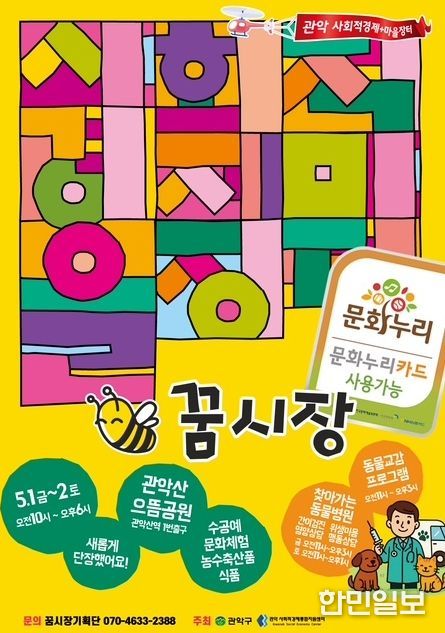 한민일보 서울포커스 곽중희 기자 | 관악구가 오는 5월 1일과 2일 양일간 관악산 으뜸공원에서 사회적경제장터 ‘꿈시장’과 ‘찾아가는 동물병원’을 함께 개최해 봄나들이객을 반기는 풍성한 콘텐츠를 선보인다.