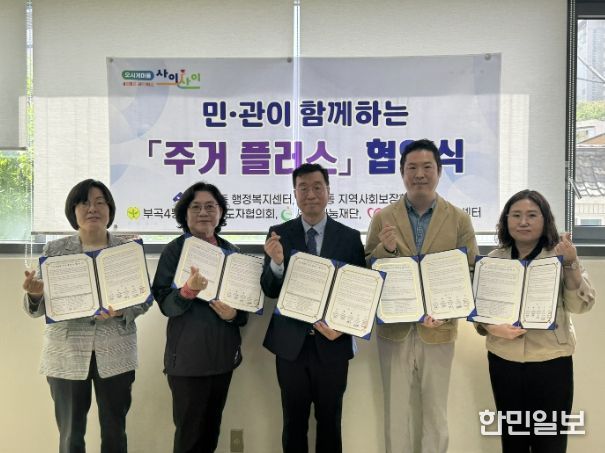 한민일보 서울포커스 임광현 기자 | 부산 금정구 부곡4동은 지난 4월 21일 세정나눔재단, 금정구 자원봉사센터, 부곡4동 지역사회보장협의체, 부곡4동 새마을지도자협의회와 함께 『민관협력 주거 플러스』 사업 추진을 위한 업무협약을 체결했다.