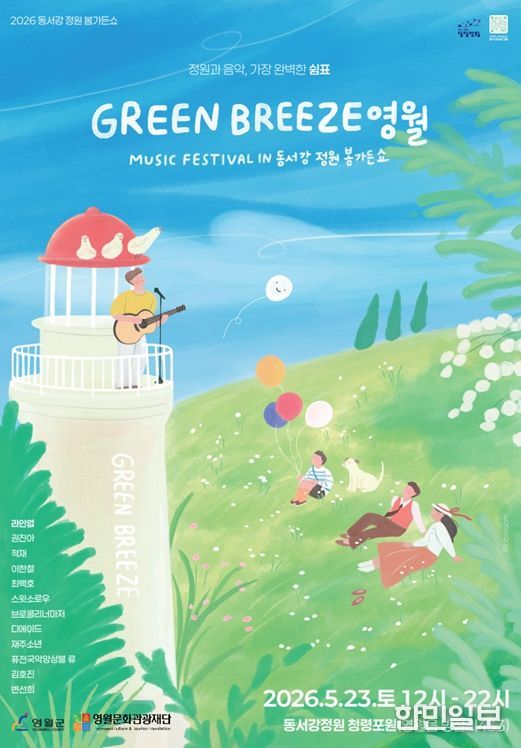 영월군이 2026 동서강정원 봄가든쇼 뮤직 페스티벌 ‘GREEN BREEZE 영월’의 최종 아티스트 라인업을 공개했다.