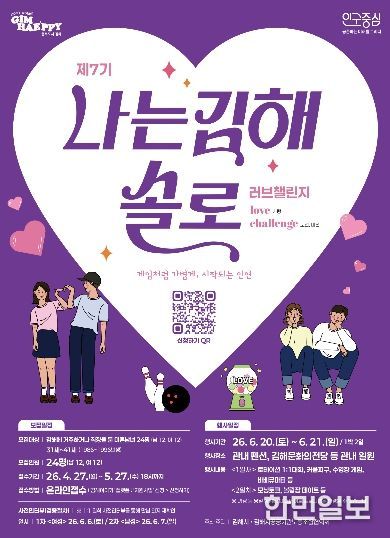한민일보 서울포커스 김은금 기자 | 김해시는 오는 6월 20일부터 21일까지 1박 2일 일정으로 관내 펜션과 김해문화의전당 등에서 진행하는‘제7기 나는 김해솔로-러브챌린지’참가자 24명(남·여 각 12명)을 모집한다고 24일 밝혔다.