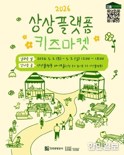 한민일보 서울포커스 유창렬 기자 | 인천관광공사는 오는 5월 2일부터 3일까지 이틀간, 상상플랫폼 웨이브홀에서 “2026 상상플랫폼 키즈마켓”을 개최한다고 밝혔다.
