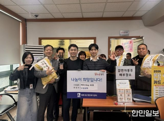 한민일보 서울포커스 진광성 기자 | 수원시 권선구 소재 수성교회는 세류3동행정복지센터에 쌀 50포를 기부하며, 지역 내 어려운 이웃을 위한 따뜻한 나눔을 실천했다.