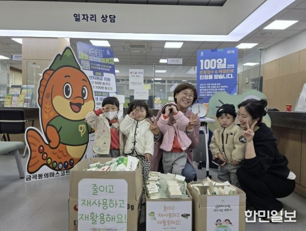 한민일보 서울포커스 진광성 기자 | 수원시 권선구 금곡동 행정복지센터는 지난 22일 오전 10시, 행정복지센터 민원실에서 시립수원가온어린이집 원생 10여 명이 참여한 ‘금곡이가 알려주는 재활용 놀이터’ 체험 행사를 진행했다고 밝혔다.
