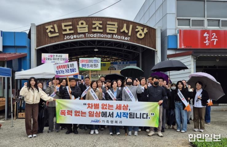 한민일보 서울포커스 임경복 기자 | 진도군은 지난 22일 진도읍 오일장이 열리는 조금시장에서 일상에서의 차별과 편견을 줄이기 위해 ‘차별 없는 세상, 폭력 없는 일상에서 시작됩니다’를 표어로 폭력 예방 운동(캠페인)을 진행했다.