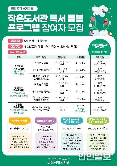 시립도서관장은 “작은도서관이 단순한 독서 공간을 넘어 지역사회 돌봄 공백을 해소하는 따뜻한 커뮤니티 공간으로 자리 잡기를 기대한다.”라며 “정성껏 준비한 프로그램들이 아이들의 성장에 좋은 밑거름이 되고, 육아로 고민하는 가정에 기분 좋은 활력이 되길 바란다.”라고 전했다.