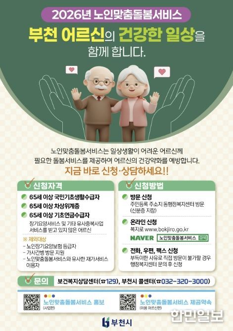 부천시 관계자는 “돌봄이 필요한 어르신을 적극 발굴해 필요한 서비스를 적시에 제공하겠다”며 “지역사회 중심의 돌봄 체계를 지속 강화해 나가겠다”고 말했다.