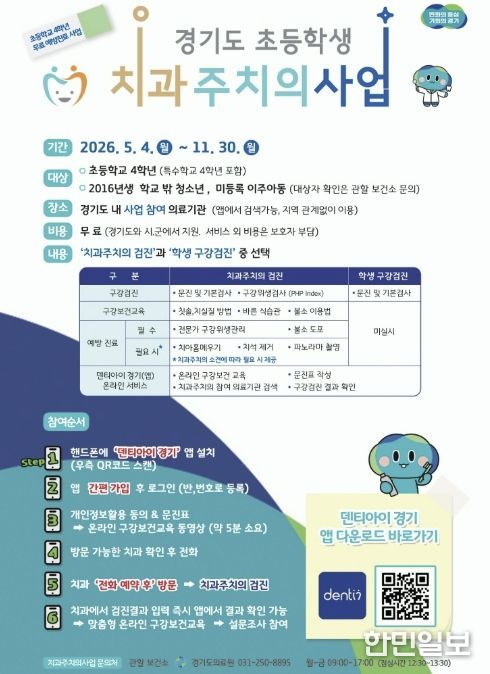 한민일보 서울포커스 심기옥 기자 | 포천시보건소는 지역 내 아동의 구강건강 관리를 강화하기 위해 오는 5월 4일부터 11월 30일까지 ‘초등학생 치과주치의사업’을 추진한다.