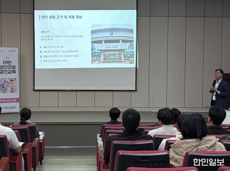 한민일보 서울포커스 심기옥 기자 | 포천시정신건강복지센터는 지난 23일 경기대진테크노파크 종합지원센터 1층 소강당에서 임직원 60여 명을 대상으로 ‘시민정신건강증진교육’을 실시했다.