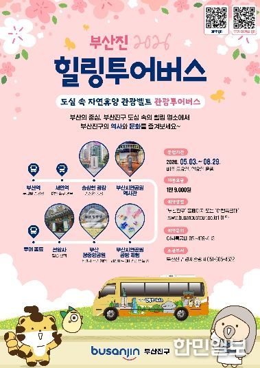 한민일보 서울포커스 임광현 기자 | 부산진구는 도심 속 자연휴양 관광벨트 사업의 일환으로 부산진구의 주요 관광지와 자연휴양 자원을 연계한 ‘부산진 힐링투어버스’를 5월부터 9월 말까지 운영한다고 밝혔다.