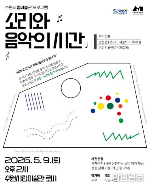 한민일보 서울포커스 진광성 기자 | 경기도 수원시립미술관은 을 맞아 소리를 주제로 한 음악 프로그램 '소리와 음악의 시간'을 5월 9일 개최하며 참여자를 모집한다.