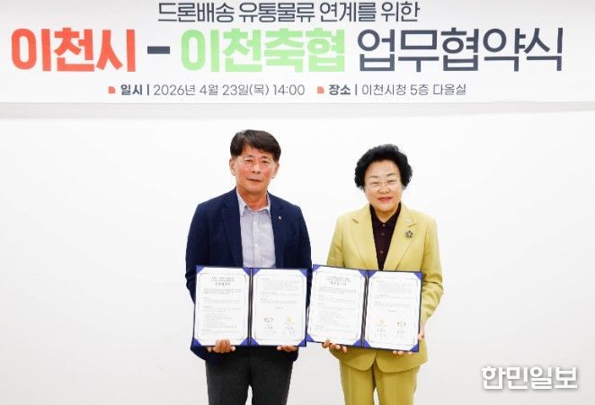 한민일보 서울포커스 박용남 기자 | 이천시는 23일 이천축산업협동조합(이하 이천축협)과 ‘드론배송 유통물류 연계를 위한 업무협약’을 체결했다.