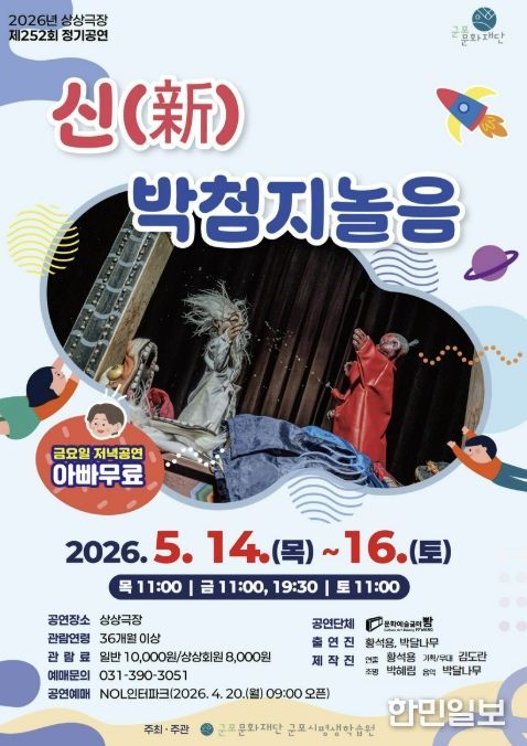 한민일보 서울포커스 임경복 기자 | 군포문화재단 군포시평생학습원 상상극장은 5월 정기공연으로 전통 인형극을 현대적으로 풀어낸 '新박첨지놀음'을 무대에 올린다. 공연은 5월 14일부터 16일까지 상상극장에서 만날 수 있다.