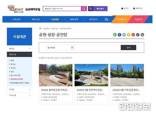 한민일보 서울포커스 김은금 기자 | 김해시는 이달부터 시민들이 각종 행사와 활동을 위해 공원을 이용할 때 필요한 공원사용허가 신청의 온라인 접수 서비스를 시작했다고 24일 밝혔다.