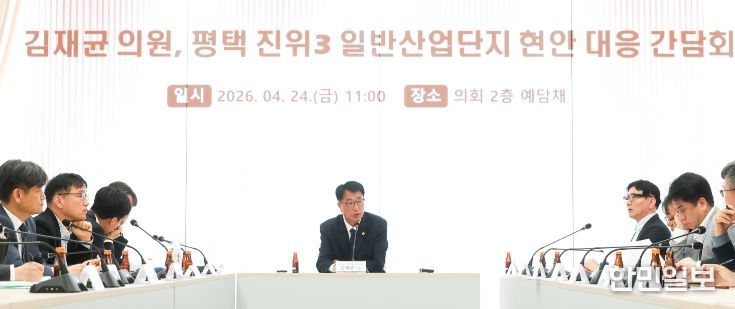 김재균 의원은 24일 경기도의회 2층 예담채에서 경기도 산업입지과, 평택시 반도체AI과, 평택도시공사, 사업시행자, 그리고 입주기업 대표가 참석하는 ‘진위3 일반산업단지 현안 대응 간담회’를 긴급 개최했다.