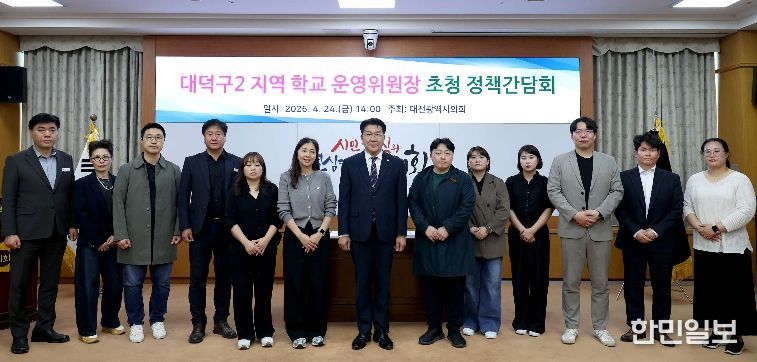 한민일보 서울포커스 유한희 기자 | 대전광역시의회는 24일 의회 소통실에서 ‘대덕구2 지역 학교 운영위원장 초청 정책간담회’를 개최했다.