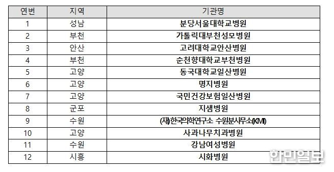 대표단에는 분당서울대학교병원, 가톨릭대학교부천성모병원, 고려대학교안산병원, 순천향대학교부천병원, 동국대학교일산병원, 명지병원, 국민건강보험일산병원, 지샘병원, (재)한국의학연구소(KMI) 수원분사무소, 사과나무치과병원, 강남여성병원, 시화병원 등 도내 의료기관 12개소가 참여했다.