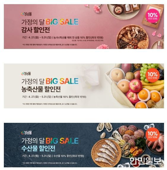 더불어 같은 기간 ‘경남 멍게 대축제’, ‘하동 쌀 기획전’, ‘통영 동행 특가 할인전’도 별도로 진행하고 있어 5월 가정의 달 기획전과 함께 소비자들에게 다양한 선택폭을 제공한다.