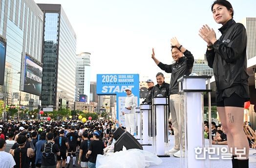 한민일보 서울포커스 최성훈 기자 | 오세훈 서울시장은 26일 오전 광화문광장에서 열린 ‘2026 서울하프마라톤대회' 출발식에서 참가자들을 응원하고 안전한 완주를 당부했다.