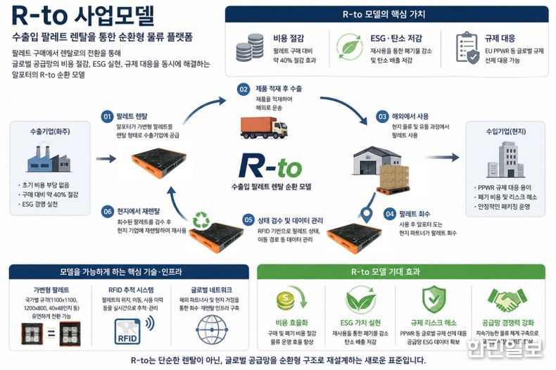 이러한 가운데 국내 물류기업 알포터가 추진 중인 ‘R-to 수출입 팔레트 렌탈 사업’이 기존 구조를 근본적으로 바꾸는 대안으로 주목받고 있다. 심층 취재 결과, 이 사업은 단순한 렌탈 모델을 넘어 글로벌 공급망 운영 방식을 재편하는 플랫폼형 비즈니스로 확장되고 있는 것으로 나타났다.