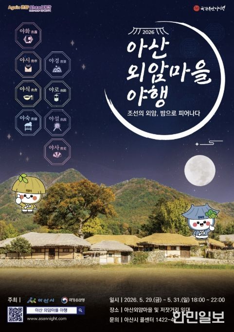 한민일보 서울포커스 임경복 기자 | 아산시의 대표적인 야간 문화유산 축제인 ‘2026년 아산 외암마을 야행’이 오는 5월 29일부터 31일까지 3일간 송악면 외암민속마을과 저잣거리 일원에서 펼쳐진다.