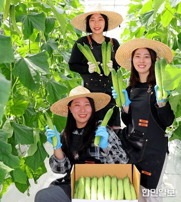 한민일보 서울포커스 김다남 기자 | 지난 24일 충북 괴산군 소수면 아성리의 한 스마트팜 연동하우스. 30도에 육박하는 하우스 열기 속에서 세 명의 젊은 여성이 오이 수확에 한창이다.