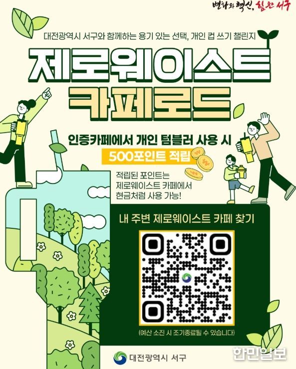 한민일보 서울포커스 진광성 기자 | 개인 컵 지참 시 포인트 500원이 적립되는 대전 서구의 ‘착한 카페’가 속속 늘어난다.