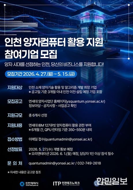 시는 연세대학교와 협력해 ‘2026년 인천 양자컴퓨터 활용 지원사업’에 참여할 기업을 모집한다.