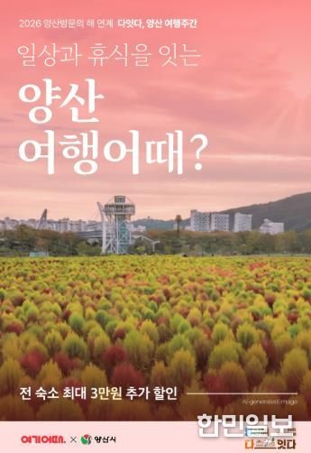 한민일보 서울포커스 김은금 기자 | 양산시는 ‘2026 양산방문의 해’를 맞아 당일형 관광에 치중된 여행 패턴을 관내에서 하룻밤 머무는 ‘체류형 관광’으로 전환하면서 지역 관광 산업에 활력을 불어넣기 위해 추진한 숙박 할인 프로모션 ‘다잇다, 양산 여행주간’이 관광객들의 높은 이용률 속에 개시 일주일 만에 종료됐다고 밝혔다.