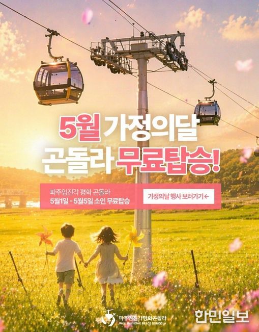 한민일보 서울포커스 진광성 기자 | 파주시는 대표 관광 콘텐츠로 자리 잡은 ‘파주임진각평화곤돌라’에서 5월 가정의 달을 맞아 가족 단위 방문객을 위한 다양한 프로그램을 운영한다고 전했다.