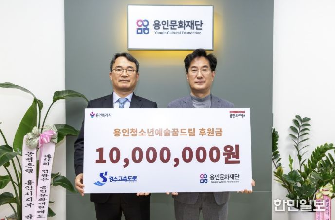 한민일보 서울포커스 김성윤 기자 | 용인문화재단은 지난 23일 경수고속도로(주)로부터 용인시 관내 청소년 예술 장학사업인 ‘용인청소년예술꿈드림’ 지원을 위한 기부금 1,000만 원을 기탁받았다고 밝혔다. 이번 후원은 용인서울고속도로를 이용하는 통행차량 1대당 1원씩 적립하고, 사회공헌예산을 추가로 편성해 지역사회 환원과 기업의 사회적 책임 실천 차원에서 추진됐다.