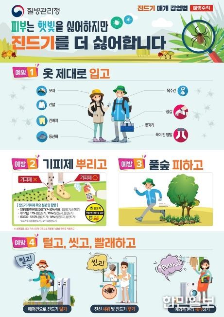 한민일보 서울포커스 심기옥 기자 | 의정부시 보건소는 따뜻한 날씨로 농작업, 등산, 캠핑 등 야외활동이 본격화됨에 따라 진드기 매개 감염병 예방수칙 준수를 시민들에게 당부했다.