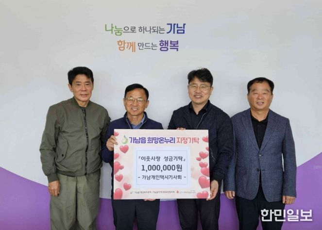 한민일보 서울포커스 전희주 기자 | 가남개인택시기사회는 지난 24일 가남읍 행정복지센터를 방문해 관내 취약계층을 위한 이웃돕기 성금 100만 원을 기탁했다.
