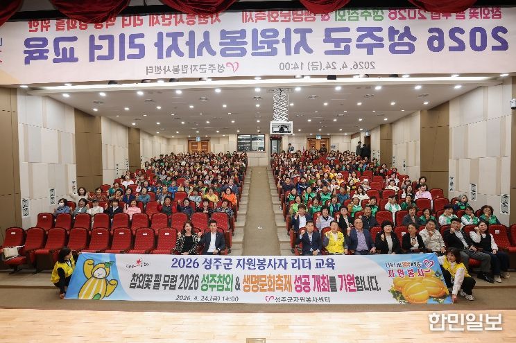 한민일보 서울포커스 임경복 기자 | 경북 성주군자원봉사센터(센터장 이명진)는 지역 공동체의 따뜻한 변화를 이끄는 자원봉사 리더들을 한자리에 모아 의미 있는 교육의 장을 마련했다. 4월 24일 성주군청 대강당에서 열린 '2026 성주군 자원봉사자 리더 교육'은 단순한 역량 강화 교육을 넘어 나눔과 연대의 가치를 되새기고, 다가오는 지역 대표 축제를 함께 준비하는 결속의 자리로 깊은 울림을 전했다.