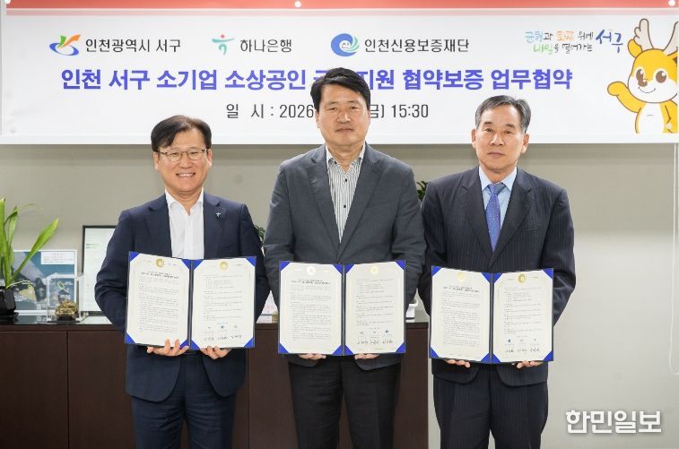 한민일보 서울포커스 김용택 기자 | 인천 서구는 지난 24일 하나은행, 인천신용보증재단과 함께 15억원 규모의 '서구·하나은행 특별지원 협약보증' 및 '인천서구 특례보증업무협약'을 체결했다고 밝혔다.