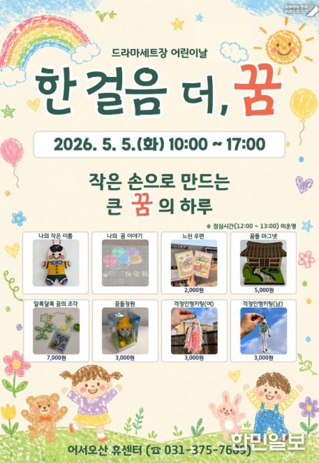한민일보 서울포커스 임경복 기자 | 오산시는 오는 5월 5일 어린이날을 맞아 오산 드라마세트장 일원에서 어린이와 가족이 함께 즐길 수 있는 체험 프로그램 ‘한 걸음 더, 꿈’을 운영한다고 밝혔다.