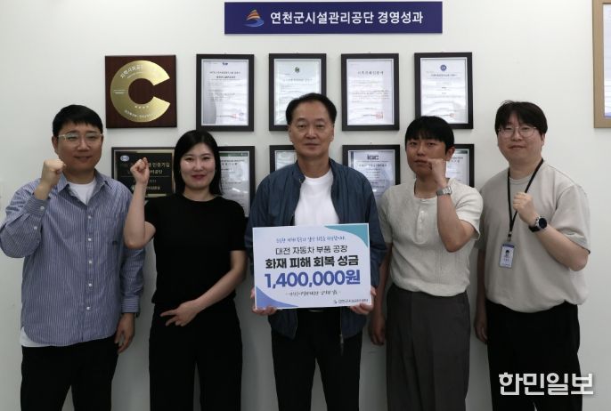 한민일보 서울포커스 임경복 기자 | 연천군시설관리공단은 지난 23일 대전 자동차 부품 공장 화재로 피해를 입은 근로자 및 이재민 지원을 위한 성금 1,400,000원을 대한적십자사에 전달했다고 밝혔다.