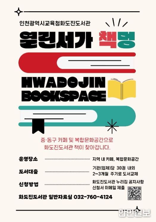 한민일보 서울포커스 유창렬 기자 | 인천광역시교육청화도진도서관은 지역 주민이 일상 속에서 독서 문화를 향유할 수 있도록, 찾아가는 열린서가 ‘책멍’ 사업의 참여 기관을 모집한다.